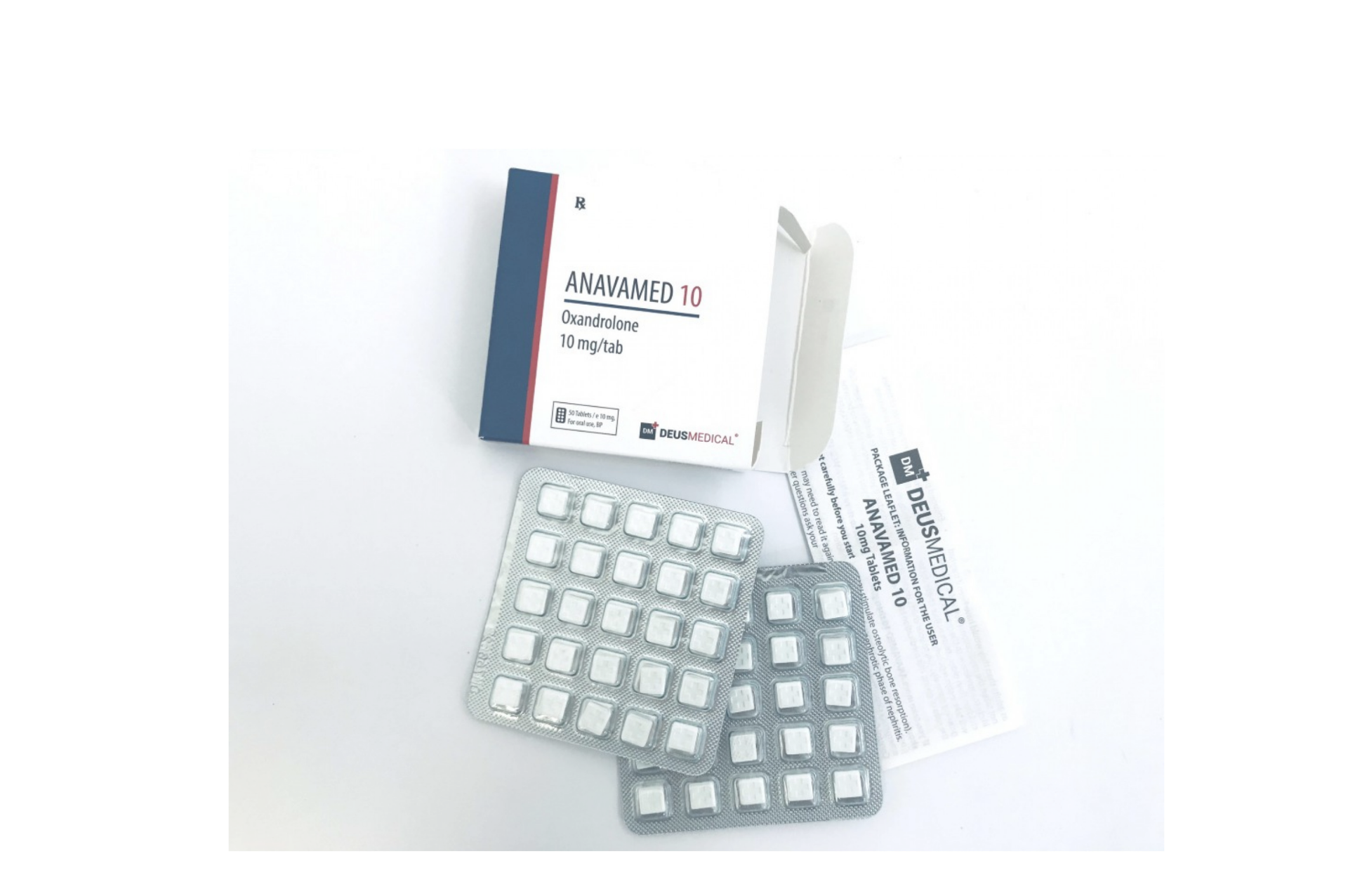 Fabricante: DeusMedical Composição: Oxandrolona Pacote: 10mg/tab. 50 comprimidos Caixa total 500mg