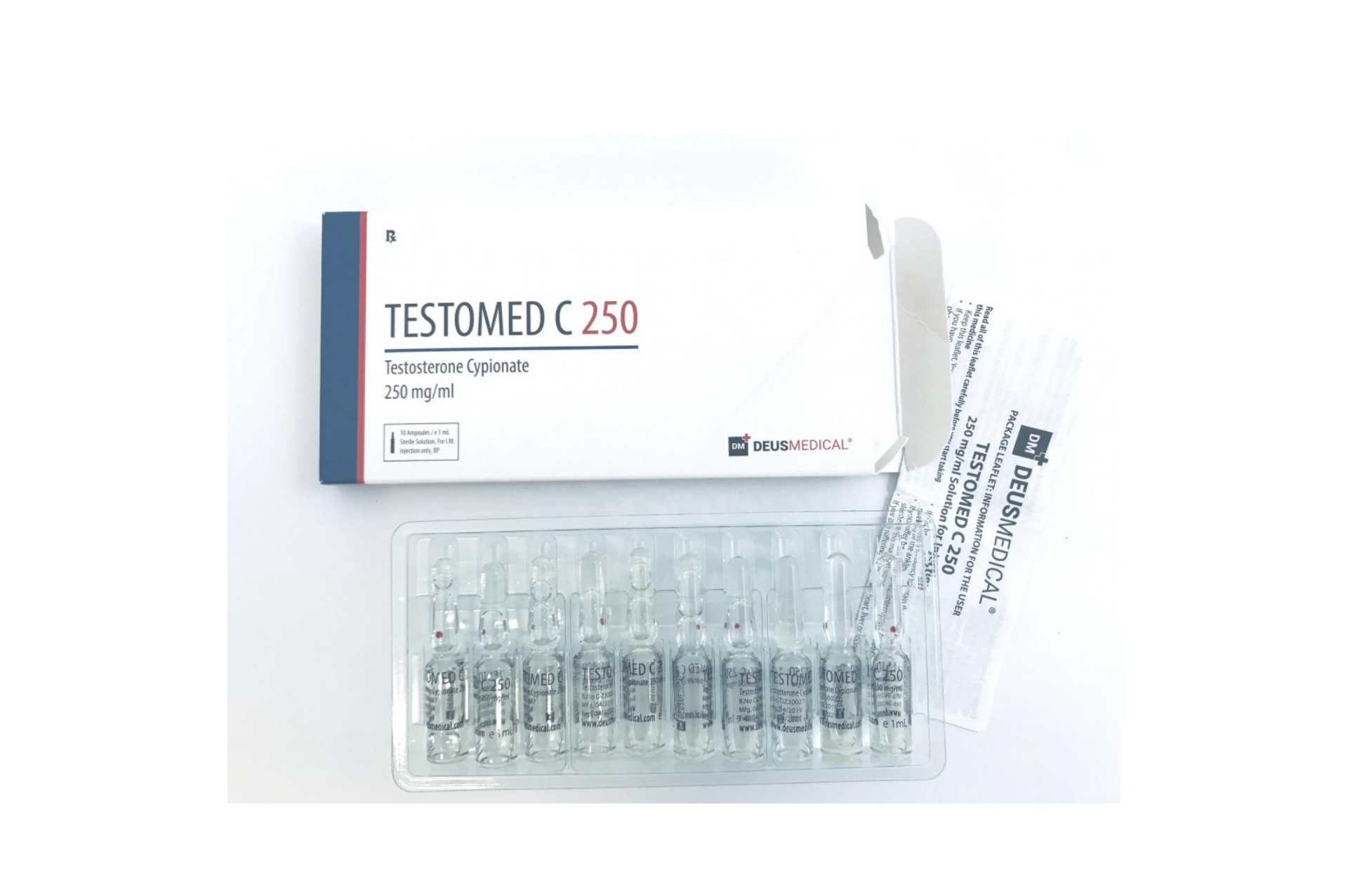 Fabricante: DeusMedical Composição: Cipionato de Testosterona Embalagem: 10 ampolas, 1ml 250 mg/ml Total da caixa: 2500mg